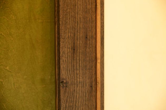 Custom molding was created for reclaimed wormy chestnut and finished with plant-based stains.
