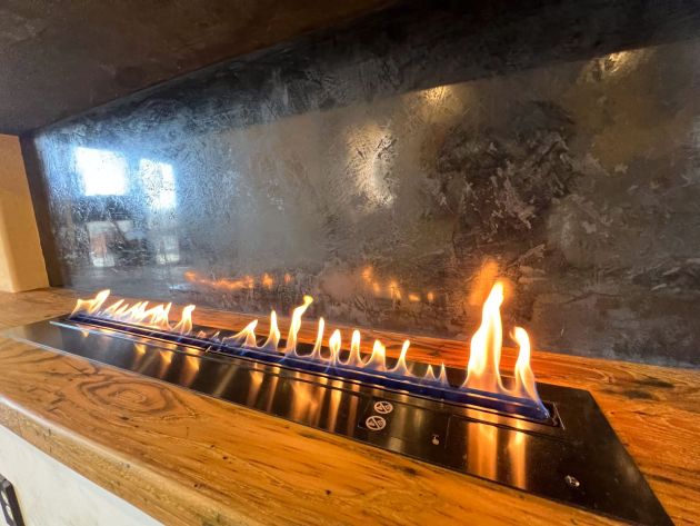 Auto light bio-fuel fireplace for both warmth and atmosphere